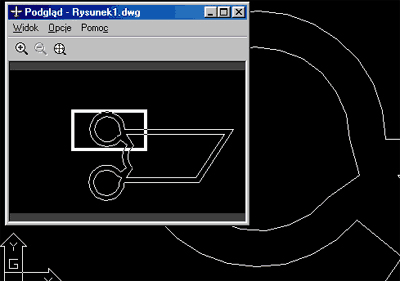 Mając już przykładowy rysunek, możemy pozwolić sobie na jego dokładne obejrzenie przy pomocy narzędzi, które zostały omówione w lekcji 11. poprzedniego cyklu dla początkujących-czyli ZOOM PAN. Jednak oglądanie przy pomocy tych narzędzi jest w pewnym sensie niepełne. AutoCAD oferuje jeszcze inne sposoby śledzenia zawartości rysunku, a jednym z nich jest Podgląd. Narzędzie to pozwala na stałe śledzenie zawartości rysunku przy pomocy specjalnego okna dialogowego, które pozwala na wykonywanie dynamicznych zbliżeń do wybranych fragmentów edytowanego rysunku. Uff! Teraz może przejdźmy do praktyki. Aby uruchomić narzędzie podglądu, klikamy ikonę przedstawioną poniżej: