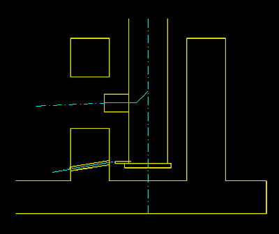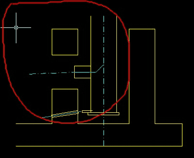 Tak jak widać, rysunek jest pozbawiony niektórych zbędnych dodatków takich jak wymiary oraz kreskowania. Ale co zrobić, jeśli chcemy teraz takie elementy dodać. Ano nic prostszego-klikamy kolejno Plik->Wczytaj Częściowo i zaznaczmy kolejne warstwy do wczytania na rysunku w oknie dialogowym, które już poznaliśmy. Tak więc można powiedzieć: fajna zabawka, ale czym, poza oszczędnością pamięci, różni się ona od włączania czy wyłączania odpowiednich warstw na rysunku wczytanym w całości. Jest jeden pewien malutki "detalik", który pozwala na częściowe wczytanie kawałka rysunku i dołączenie jego reszty, ale tylko w jego wskazanym fragmencie. Aby pokazać taką sztukę, dołączę do naszego częściowo otwartego rysunku informacje, jakie mnie interesują, ale tylko w części pokazanej na poniższym rysunku.