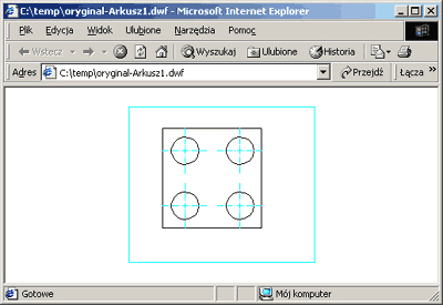 Jak widać, rysunek ten jest odpowiednio przygotowany-posiada warstwy oraz odpowiednie kolory do nich przypisane. Teraz zapiszmy ten rysunek w pliku, nadając mu dowolną nazwę-w następnym kroku dokonamy jego częściowego otwarcia. Aby dokonać częściowego otwarcia pliku, musi być on zapisany w formacie AutoCAD 2000. Jeśli zatem mamy gotowy rysunek np. w formacie AutoCAD R14, warto go otworzyć i zapisać w formacie następcy.