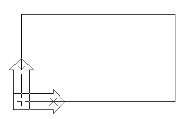 po czym w linii poleceń wpisujemy literę N (która oznacza, że chcemy utworzyć nowy lokalny układ współrzędnych), a następnie wskazujemy lewy dolny róg prostokąta. Program w tym miejscu wstawi lokalny układ współrzędnych. Od tej pory w punkcie tym są następujące współrzędne: x=0, y=0, z=0.