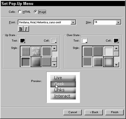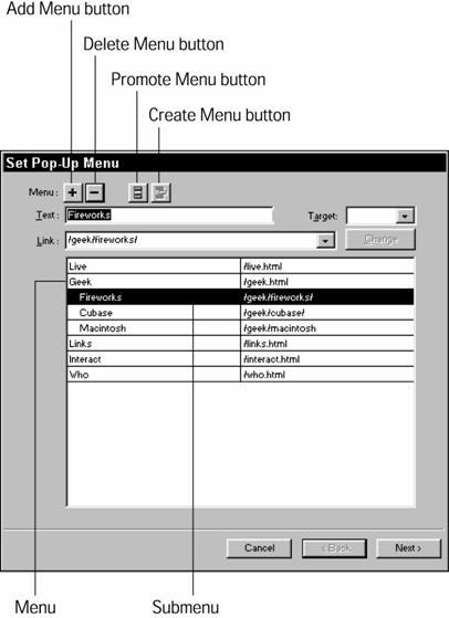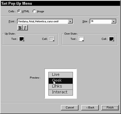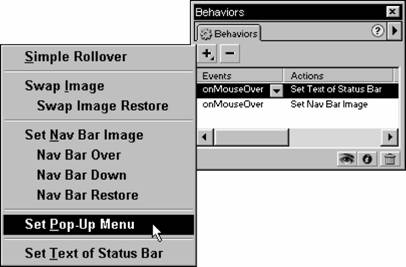 u Set Pop-up Menu (Wyświetl listę rozwijaną). Behawior tworzy listę rozwijaną na stronie WWW.