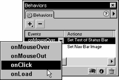 Każdy behawior składa się z dwóch części: zdarzenia (ang. event) i akcji (ang. action). Zdarzenie jest elementem uruchamiającym akcję. Można je porównać do przycisku "Play", który służy do włączania odtwarzania taśmy wideo. Zdarzenia w Internecie mogą być wynikiem działania użytkownika, wywołanego przez umieszczenie kursora nad obrazkiem, lub "automatyczne", na przykład zakończenia ładowania strony. Akcje mogą być bardzo różne - od wyświetlania prostych komunikatów do otwierania nowych okien przeglądarki.