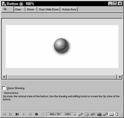 6. Jeśli chcesz utworzyć również stan Down przycisku, powtórz krok 2. Jeżeli przycisk ma mieć dodatkowo stan Over Down, jeszcze raz powtórz krok 2. W rezultacie otrzymasz w klatce Frame 1 cztery obiekty, położone dokładnie jeden nad drugim.