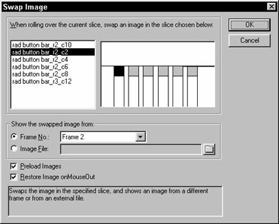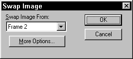 u Simple Rollover (Prosty rollover). Automatycznie zamienia obrazek z klatki Frame 1 na obrazek z klatki Frame 2, gdy użytkownik umieści nad obrazkiem kursor. Opcjonalnie można także przełączać obrazki, które znajdują się w innych klatkach, na przykład trzeciej i czwartej.