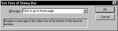 u Set Text of Status Bar (Wyświetl tekst w pasku stanu). Wyświetla komunikat w pasku stanu przeglądarki.