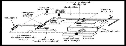 Zapis i odczyt dokonywany jest za pomocą głowic. Głowica nazywamy rdzeń z nawiniętą na nią