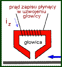 szczelinie magnesuje noonik tak długo, jak długo płynie prąd w cewce głowicy.
