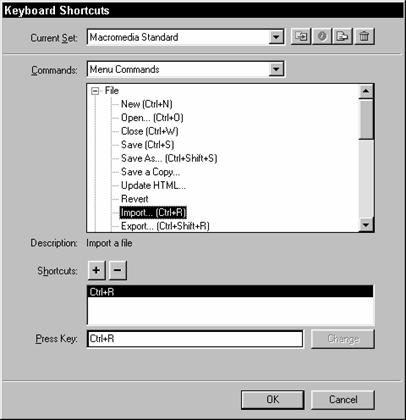 nowy skrót klawiaturowy koliduje z istniejącym, Fireworks wyświetli