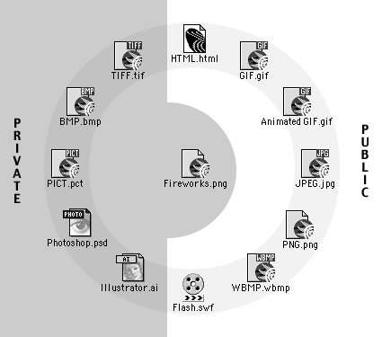 dokumentu PNG Fireworks (w środku) za pomocą polecenia Save,