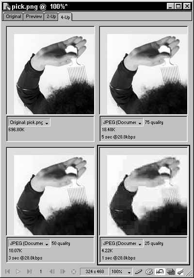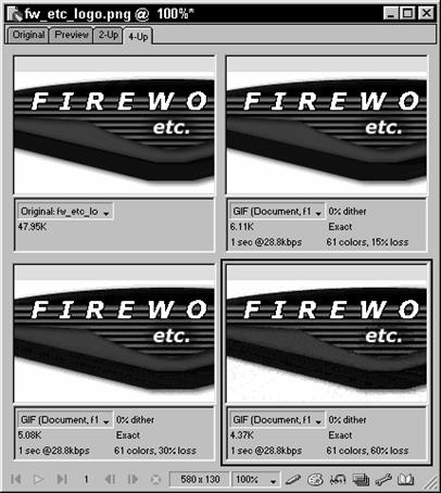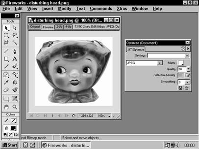 jakością grafiki a rozmiarem pliku. Fireworks oferuje podgląd