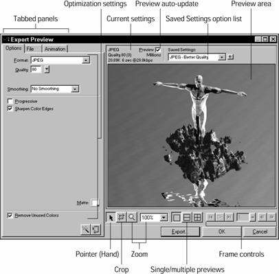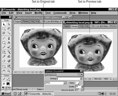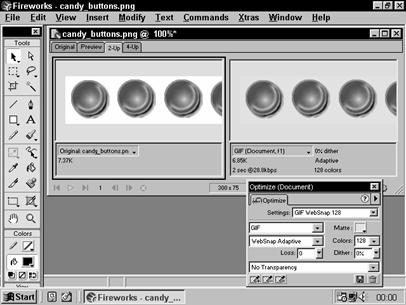 skupione są w Fireworks wokół zakładek podglądu, znajdujących