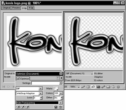 kompresję stratną formatu GIF i blokowanie kolorów. Fireworks