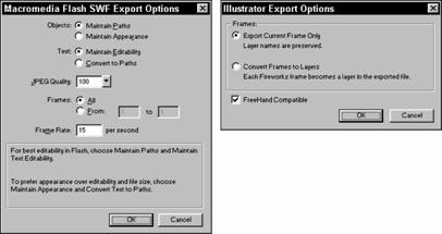 obiektów jako plików Flash SWF lub dokumentów Adobe Illustratora.