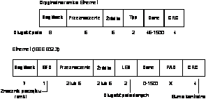 Na rysunku poniżej przedstawiono struktury oryginalnej ramki Ethernet i ramki Ethernet