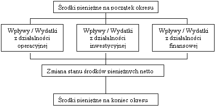 Rachunek przepływów pieniężnych uwzględnia dwie podstawowe kategorie: