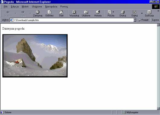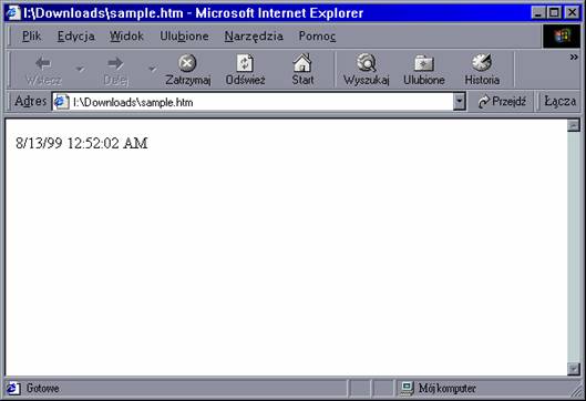 Zauważ, że metoda Write jest wpisana w znacznik obrazka HTML. Poza tym zastosowano tu podwójny cudzysłów, co oznacza, że jeden cudzysłów znajduje się w drugim.