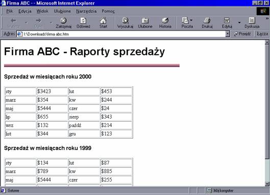 W wierszu HTML strona może zostać sformatowana zgodnie z domyślnymi preferencjami lub preferencjami gościa. Na przykład poniższy wiersz kodu ustala kolor tła:
