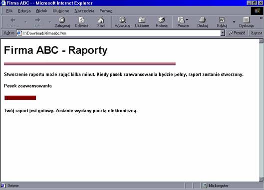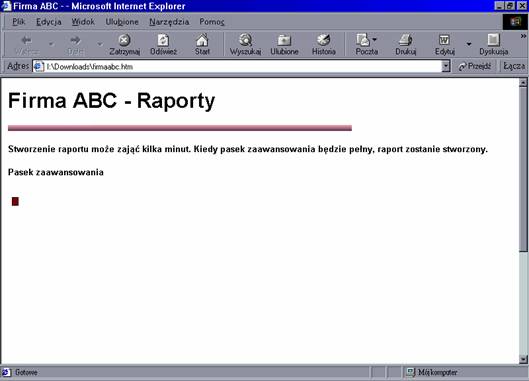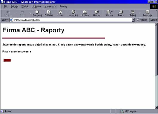 Kiedy goście wejdą na stronę, zobaczą widok pokazany na rysunku 6.12. Następnie strona rozpoczyna swój długi proces tworzenia raportu. Pasek zaawansowania wskazuje jak daleko posunął się proces, jak to pokazano na rysunku 6.13.