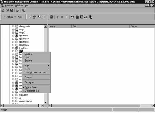 Teraz jesteś już gotowy do oznaczenia katalogu jako aplikacji ASP. Możesz to zrobić klikając katalog prawym przyciskiem myszy w oknie Konsoli zarządzania Microsoftu serwera IIS, a następnie wybierając Właściwości (Properties), jak to zaprezentowano na rysunku 8.2.