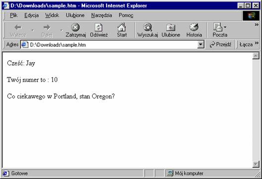 Wartości zmiennych UserID i City używane są jako dodatkowe wyjście dla przeglądarki: