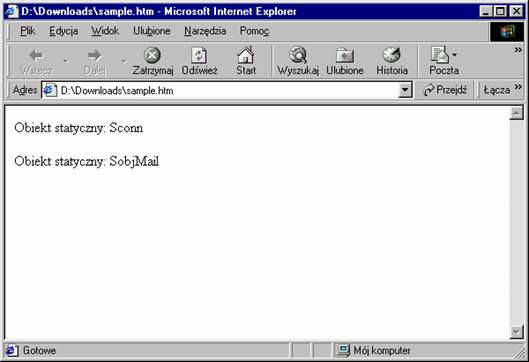 Tekst TheScope należy zastąpić słowem Session, gdybyś chciał stworzyć obiekt poziomu sesji lub słowem Application, gdybyś tworzył obiekt poziomu aplikacji. Tekst Name należy zamienić na nazwę obiektu, do której będziesz się odwoływał w kodzie. Zamiast ciągu App.Class w deklaracji musi znaleźć się nazwa serwera oraz klasa, którą chcesz utworzyć.