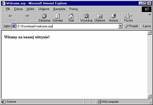 W dalszej części tego rozdziału omówimy plik global.asa w całej rozciągłości. W tym momencie powinieneś wiedzieć, że jest on częścią aplikacji ASP. Daje on możliwość napisania kodu, który uruchamiany jest na początku lub pod koniec sesji gościa. Ponadto plik umożliwia napisanie kodu uruchamianego w chwili rozpoczęcia bądź zakończenia działania aplikacji ASP.