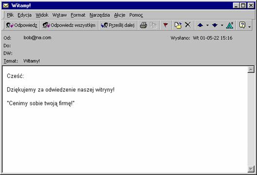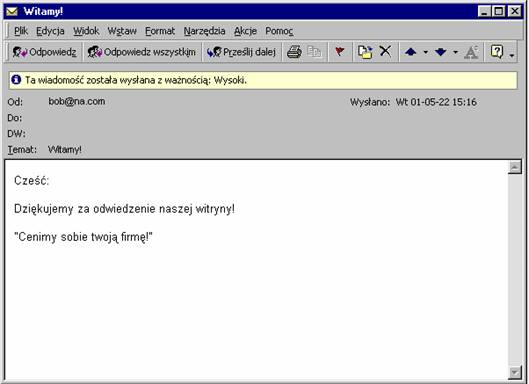 objMail.Body = "Dziękujemy za odwiedzenie naszej witryny!"