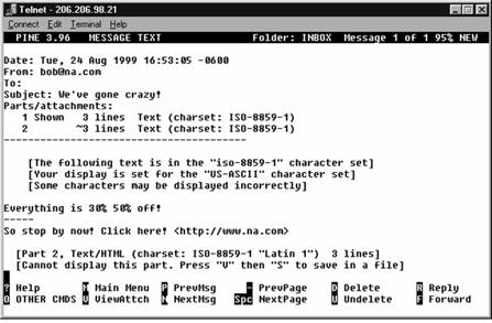 Rysunek 9.7. Wiadomość HTML przeglądana przez klienta nie obsługującego HTML-a