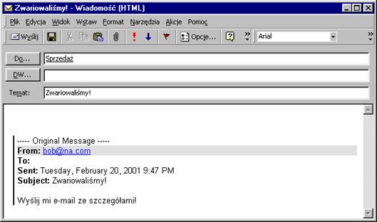 Rysunek 9.8. Wiadomość wykorzystująca nagłówek Reply-To