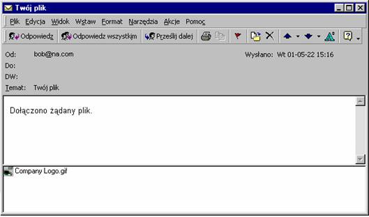 Wiadomość, którą otrzymuje odbiorca pokazana jest na rysunku 9.10. Zwróć uwagę na nazwę załączonego pliku.