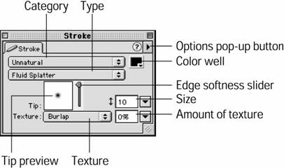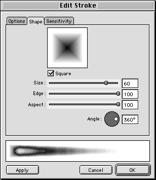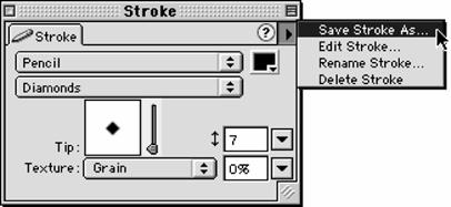 22. Wybierz polecenie Edit Stroke z rozwijanego menu palety Edit Stroke lub dwukrotnie kliknij panel podglądu Tip, aby otworzyć okno dialogowe Edit Stroke