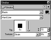 Rysunek 8.1. Wykorzystaj kontrolki znajdujące się w palecie Stroke do modyfikowania obrysu istniejącej ścieżki lub ustalenia atrybutów obrysu przed narysowaniem ścieżki za pomocą narzędzia Brush |