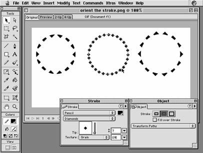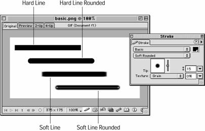 kontrolować z poziomu palety Stroke. Dodatkowo Fireworks pozwala na