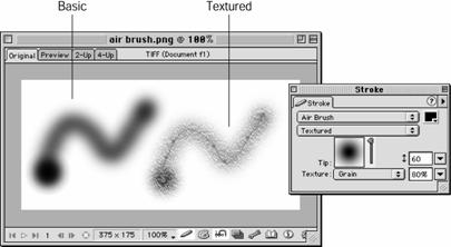 Basic - Podstawowy Textured - Z teksturą Textured Air Brush (Aerograf z teksturą) znacznie różni się od obrysu Basic Air Brush (Podstawowy aerograf) i jest dobrym przykładem zastosowania tekstury do obrysu. Tabela 8.3. Atrybuty obrysów Air Brush