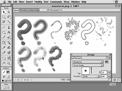 u Fireworks oferuje 48 różnych typów obrysów podzielonych na 11 kategorii. Wiele obrysów jest interaktywnych, a to oznacza, że reagują na nacisk i prędkość podczas rysowania.