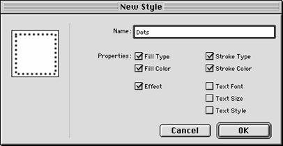 18. Kliknij przycisk OK. Nowy styl zostanie umieszczony w palecie Styles Wszystkie style utworzone za pomocą powyższych wskazówek będą zawsze dostępne dla kolejnych dokumentów Fireworks. Aby zastosować obrys, wystarczy zaznaczyć dowolną ścieżkę wektorową i kliknąć styl w palecie Styles. Obrys zdefiniowany w stylu zostanie dodany do palety Stroke