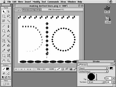 Rysunek 8.26. Modyfikując ustawienia w oknie dialogowym Edit Stroke, w prosty sposób możesz utworzyć kropkowaną linię |