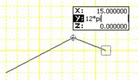 Zdefiniowano w programie stałą . Wprowadza się ją w działaniach matematycznych jako "pi". Poniżej przykład wstawienia działania "w dymku" podczas wprowadzania współrzędnych.