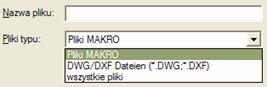 Podczas wczytywania makra (nie "dołączania") mamy możliwość wczytywania pliku w kilku formatach, bez konieczności uruchamiania konwerterów. W wersji Lt możliwe jest wczytywanie plików w formatach: MAC, DWG oraz DXF (rys. poniżej).