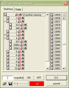 W oknie dialogowym warstw/grup dodano pole, za pomocą którego można przejść do żądanej warstwy/grupy (rys. poniżej). Podczas wprowadzania numeru, kursor automatycznie przesuwa się na żądaną warstwę/grupę.