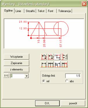 wczytanie zdefiniowanego wcześniej stylu wymiarowania;
