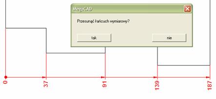 Po wyborze pola "tak" - przesuniemy cały łańcuch wymiarowy. Wybierając "nie" - tylko zaznaczony wymiar.