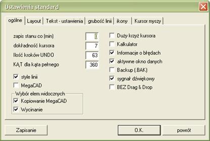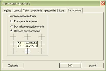 Włączenie opcji powoduje wyświetlanie na ekranie współrzędnych pozycji kursora myszy (w postaci dymka przy kursorze).