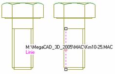 Przy pomocy funkcji Drag&Drop można wybrać z rysunku również elementy biblioteczne. Po kliknięciu na element należący do makra, pojawi się nazwa makra oraz nazwa klikniętego elementu (rys. poniżej). Zaznaczając odpowiednio myszką, wybierzemy makro lub pojedynczy element. Wybrany z listy element zostanie odpowiednio zaznaczony. Na liście może znajdować się więcej pozycji, jeżeli klikniemy na element należący do makra zawierającego się w innym makrze.