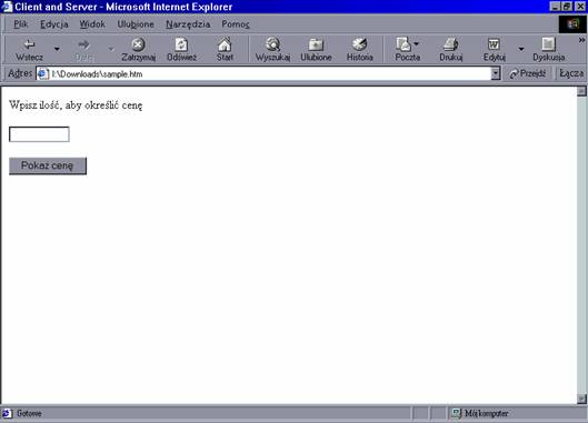 Aby to zademonstrować, spróbujmy stworzyć kalkulator obliczający cenę, z którego klienci mogliby skorzystać w celu określenia, ile będzie kosztowała pewna ilość produktu. Stałym klientom oferujemy inną cenę niż pozostałym. Chcemy, aby cena była obliczana po stronie klienta w celu zredukowania liczby połączeń i aby szybkość działania kalkulatora pozwalała klientom na wielokrotne wpisywanie cen. Musimy jednak stworzyć skrypt po stronie klienta, aby cena była ustalana indywidualnie w oparciu o typ klienta, co z kolei zapisane jest w zmiennej po stronie serwera. Poniższy kod realizuje to zadanie, łącząc skrypt strony klienta i strony serwera: