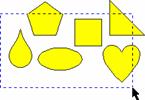Wybierz narzędzie wskaźnik i przeciągnij kursorem ukośnie po rysunku z wciśniętym lewym przyciskiem myszy (tak jakbyś chciał narysować prostokąt). Wszystkie obiekty, które w całości znajdą się we wskazanym obszarze, zostaną zaznaczone.