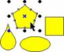Po narysowaniu dowolnego obiektu na jego obwodzie pojawią się czarne kwadraty. Są to tak zwane uchwyty zaznaczenia (lub po prostu uchwyty). Zawsze w środku obiektu pojawia się natomiast znacznik X.