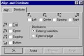Gdy zostanie zaznaczone pole Extent of page, obiekty zostaną równomiernie rozłosone na stronie, a nie w obszarze ich zaznaczenia. Jeseli nie jesteś pewien skutków działania tej opcji, mosesz przejrzeć wyniki działania, wybierając przycisk Preview. Jeseli Cię zadowolą, zatwierdzisz ustawienia przyciskiem OK, w przeciwnym razie mosesz wrócić do oryginalnego ustawienia dzięki przyciskowi Anuluj.