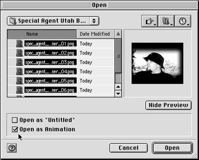 Rysunek 6.2. Za pomocą opcji Open as Animation możesz tworzyć w Fireworks animacje składające się z sekwencji wielu plików |