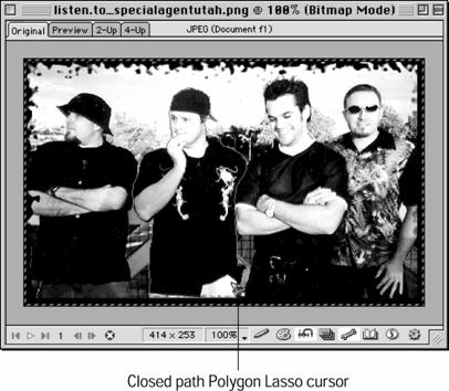 u 16516f55q 16516f55q Jeśli obwódka wskazująca tryb edycji grafiki bitmapowej otacza całe okno dokumentu, wybierz jedno z narzędzi selekcji (Marquee - Prostokątne zaznaczenie, Oval Marquee - Owalne zaznaczenie, Lasso Polygon Lasso - Wielokątne lasso lub Magic Wand - Magiczna różdżka) i kliknij dwukrotnie poza obiektem.
